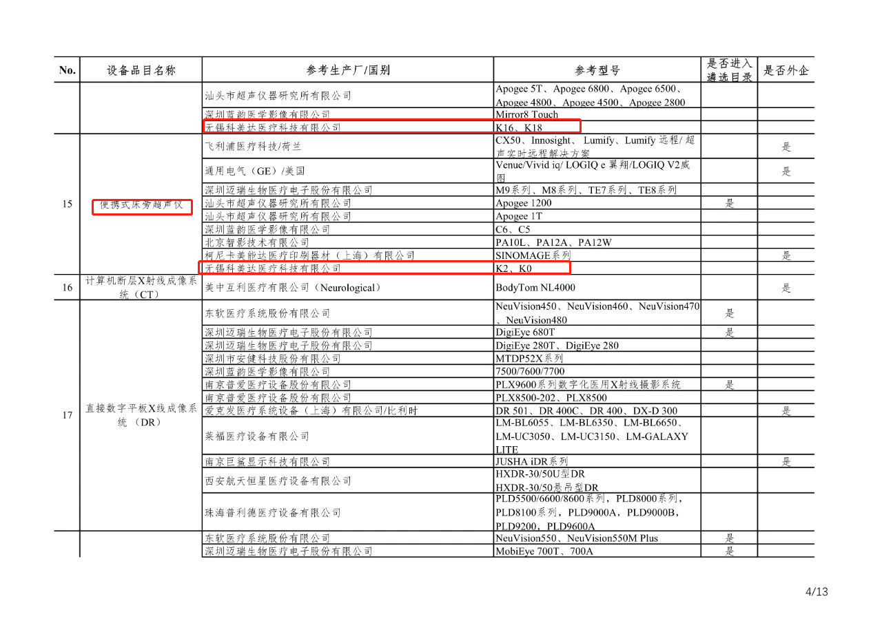 無(wú)錫科美達(dá)彩超進(jìn)入新冠肺炎疫情防治急需醫(yī)學(xué)裝備目錄